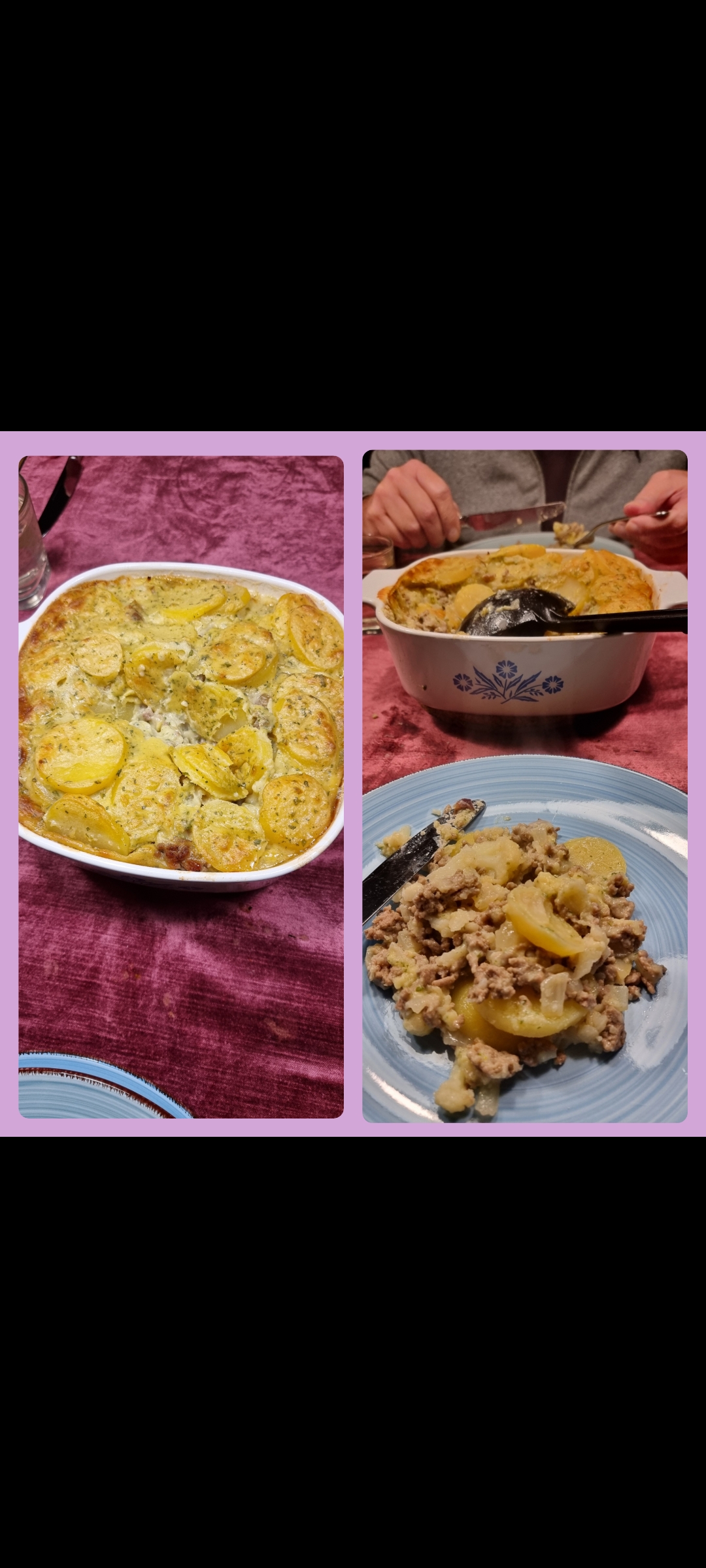 Bloemkool, gehakt en aardappelschijfjes met een zakje van Maggi. Erg lekker, vooral met dit koude weer!